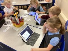In Maths, we've been concentrating on adding together. We used lots of practical resources like counters and ten frames to help us combine groups and find the total. The children are getting really good at understanding how addition works and are becoming more confident in solving simple number sentences!