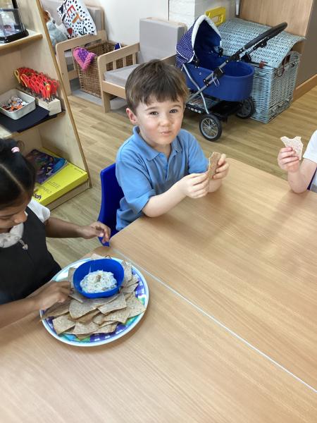 This week we continued learning about people who help us. We learned about the protective clothing worn by firefighters and worked with a partner to design our own uniforms. We were very lucky to visit inside our school kitchen and find out about how our dinners are prepared. Julie even made us some special biscuits for our snack!