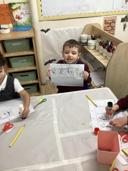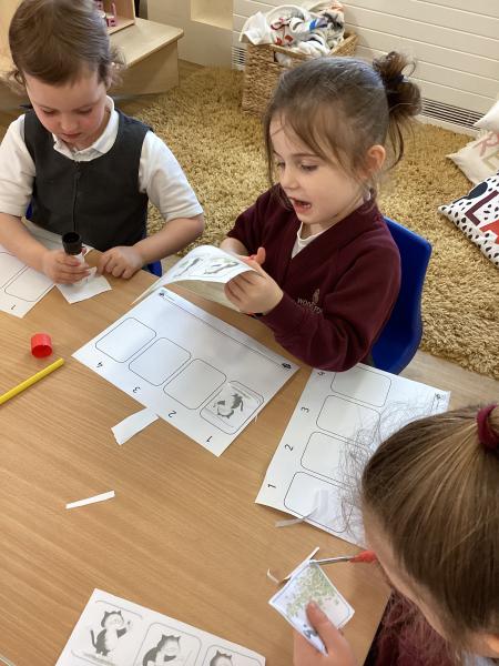In maths, we have introduced the concept of time. We’ve been learning about the order of events and the children practised putting simple activities in order. We have also used egg timers to help understand the concept of time and we have been looking at routines in their day as well as days of the week. This helps them build early understanding of how time passes and how to talk about it.
