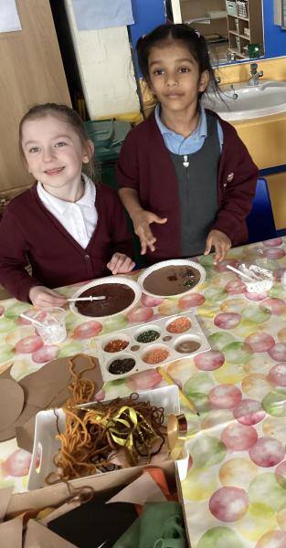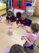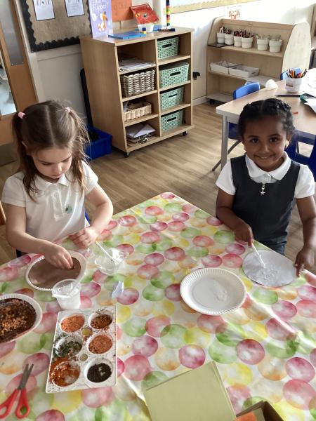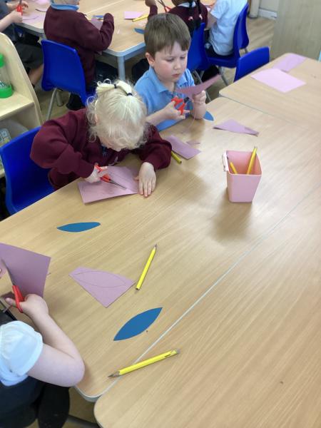In art, we looked at Vincent Van Gogh’s 'Sunflowers' painting. Taking inspiration from the famous artist we began creating our own sunflower collages, practising our tearing and cutting skills, the children are very proud of their sunflower masterpieces and we are going to display them on our classroom wall.