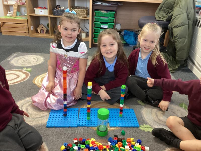 In maths, we have introduced the concept of time. We’ve been learning about the order of events and the children practised putting simple activities in order. We have also used egg timers to help understand the concept of time and we have been looking at routines in their day as well as days of the week.