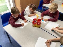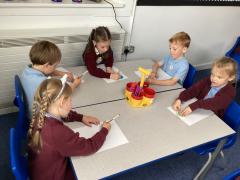 In Maths, the children have been comparing amounts and numbers using the phrases: greater than, less than and equal to as well as looking at the corresponding symbols <,> and =. I have been really impressed with how well the children have understood the difficult concept of using symbols to compare amounts and numbers.