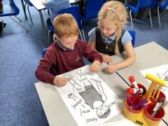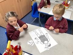 In Science, the children have followed on from animal body parts to looking at human body parts. We played games of Simon Says to help us remember all of the body parts before they labelled a human body.