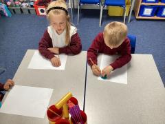 In Art, the children practiced painting a piece similar to the work of Kandinsky! They used different colours in circular motions.