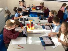 In English, the children used iPads to research synonyms for worried, frightened, delighted and relieved.